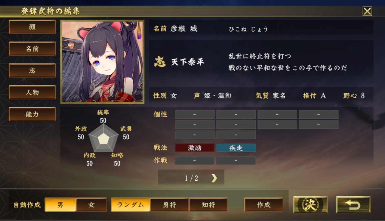 コラム 信長の野望 大志pk 新武将作成 オリジナル武将編その1 ゲームリプレイ Audio Sound Hatena